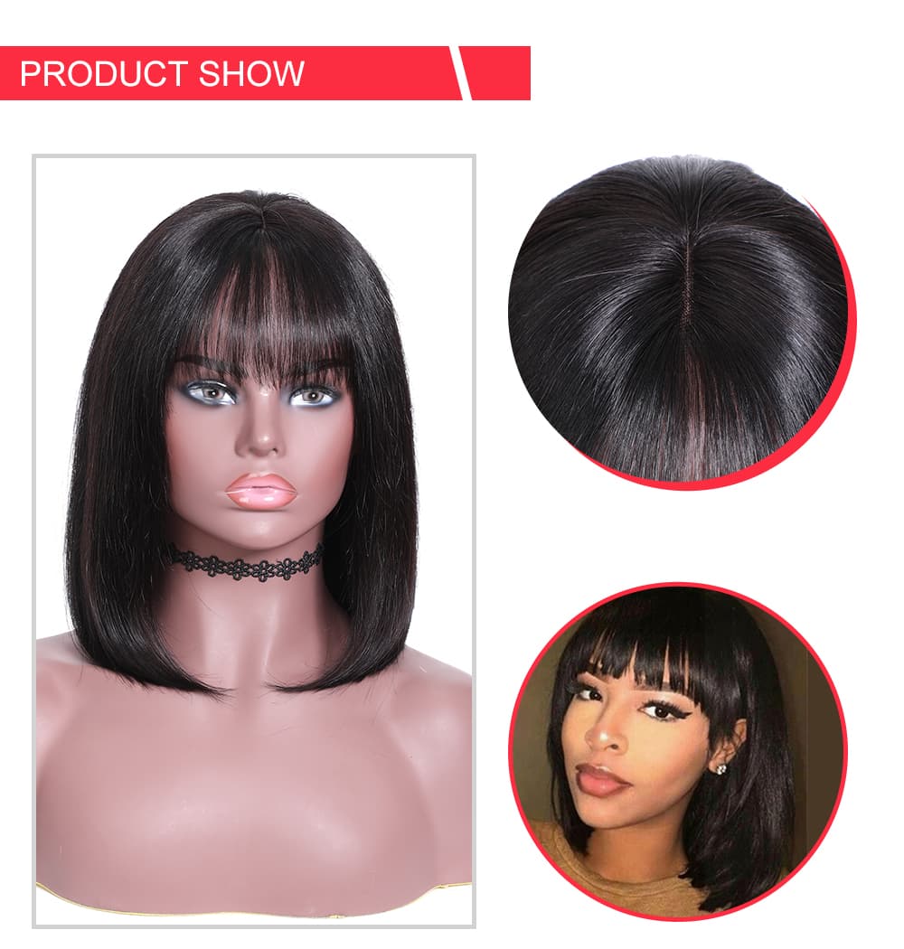 | Meta Keywords | Short Bob Wigs With Bangs, 150% Density Wig, Brazilian Human Hair Wig |