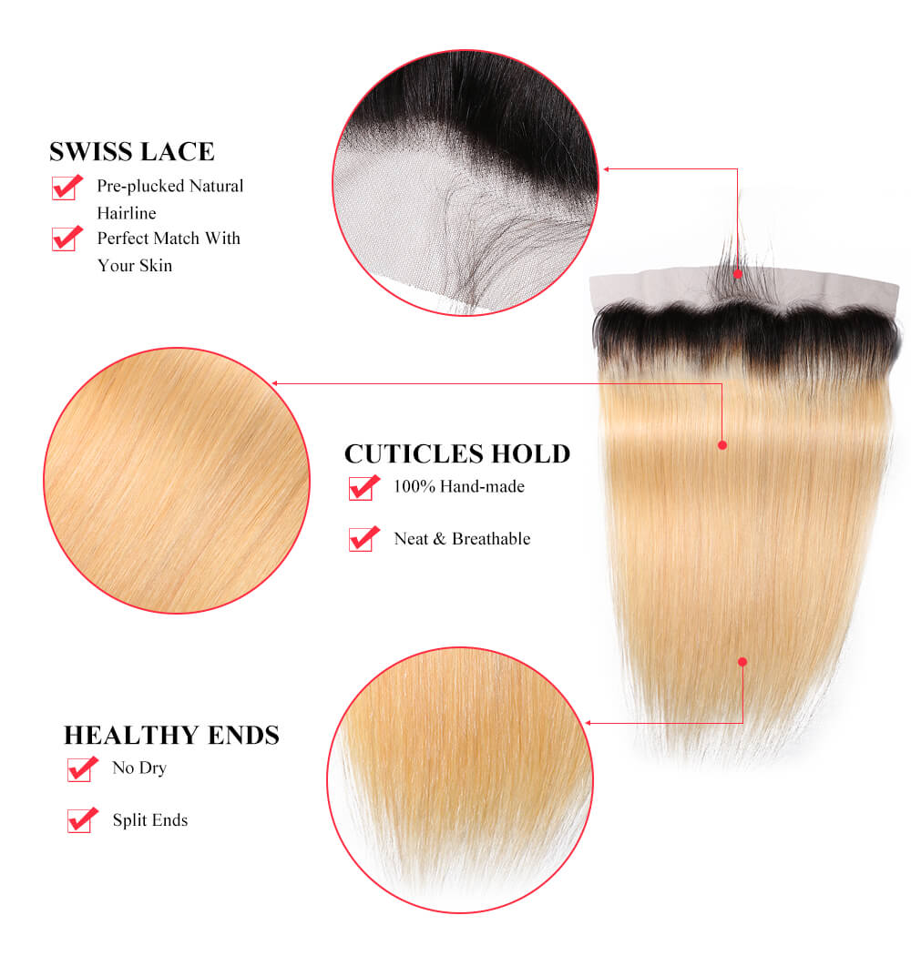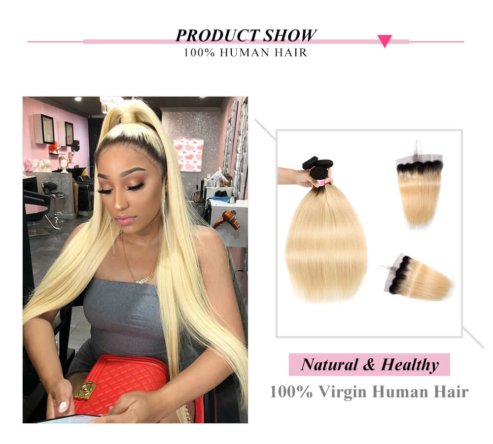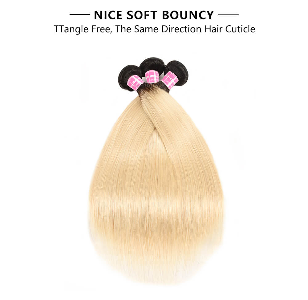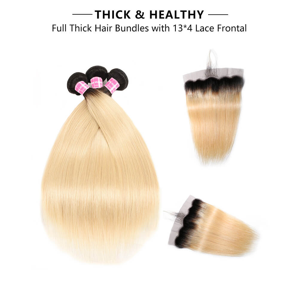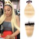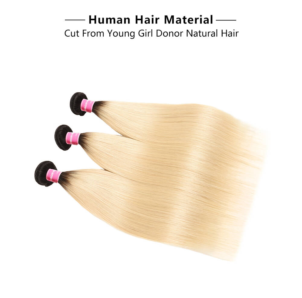 Incolorwig New #T1B613 Ombre Blonde Straight Peruvian 3 Bundles Hair With 13*4 Free Part Lace Frontal