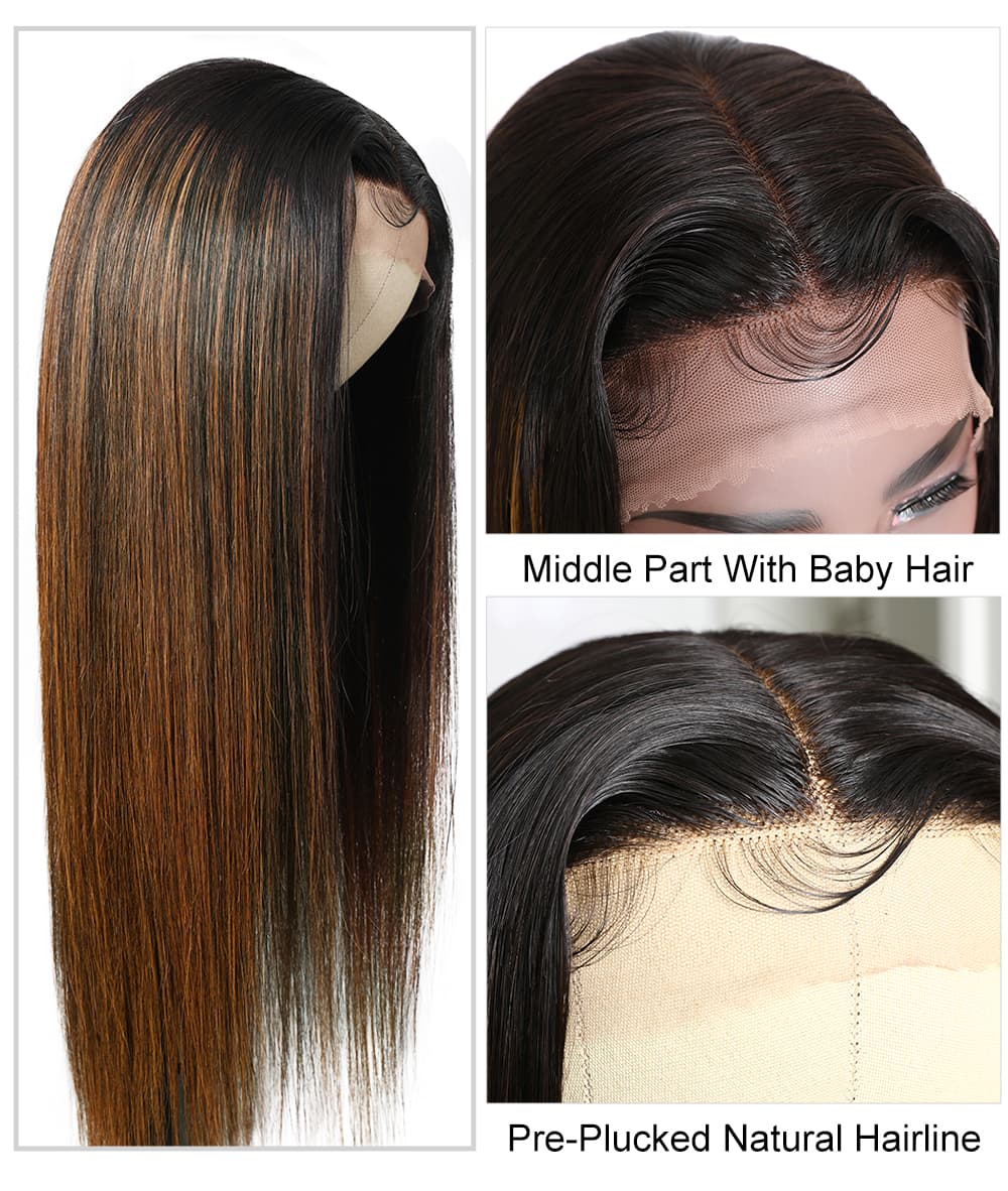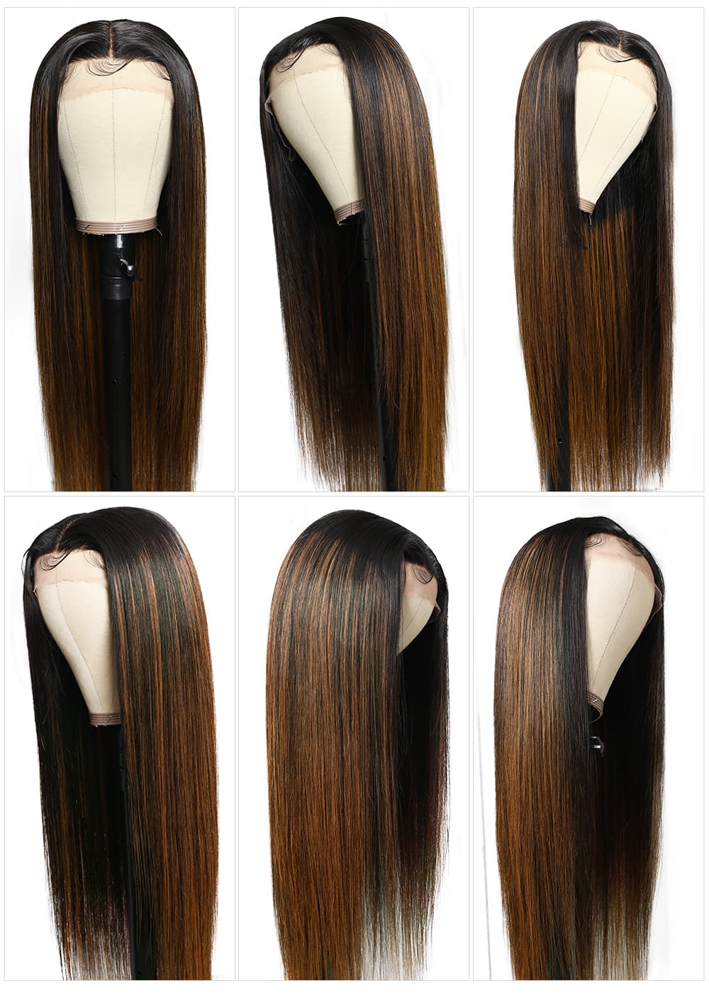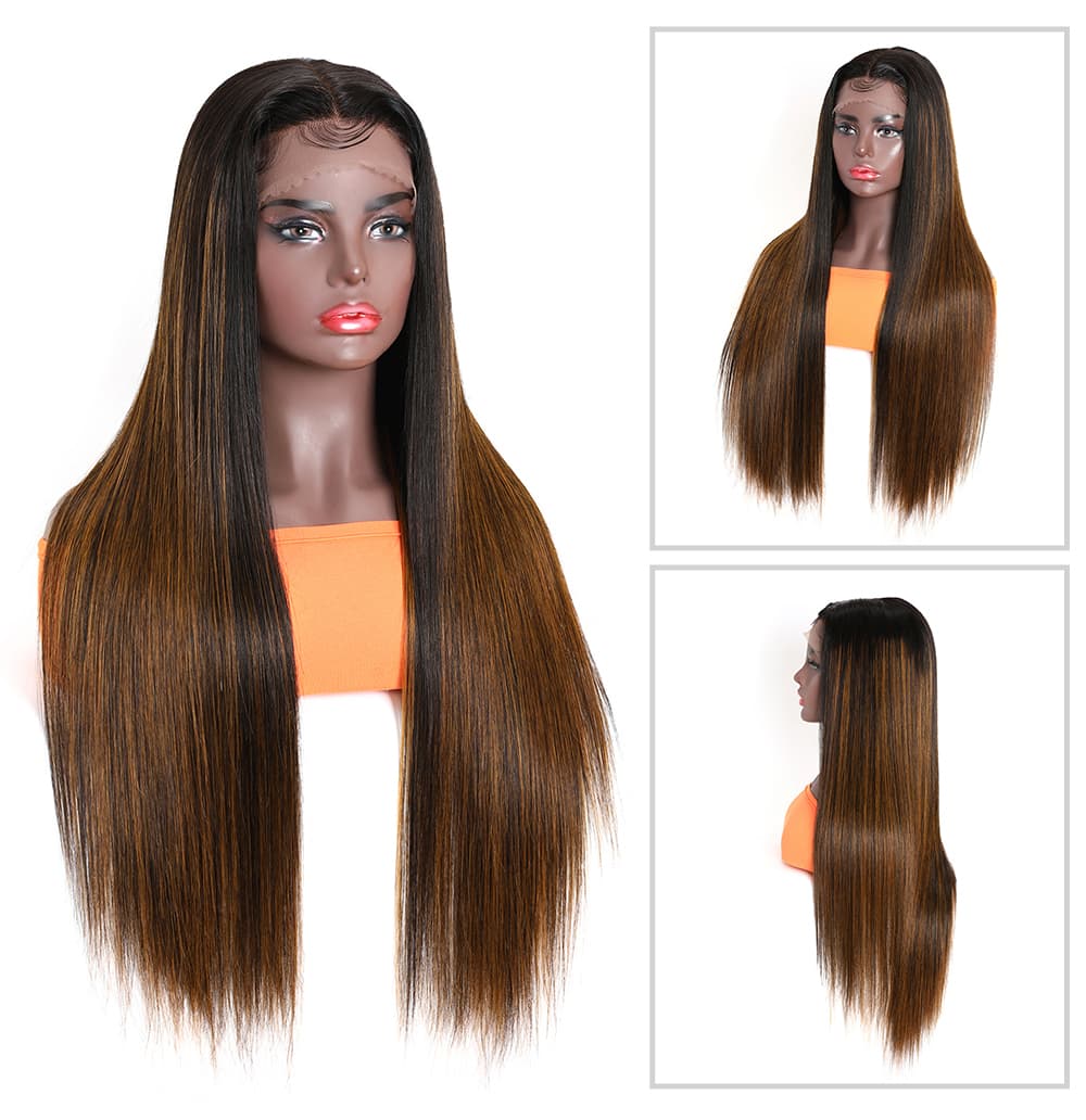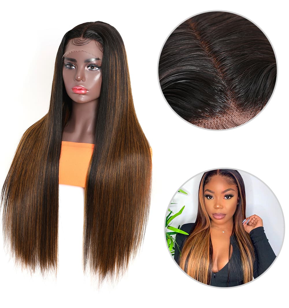 Incolorwig New Fashion #FB30 Highlight Ombre Wigs Pre-plucked Natural Hairline T Part Wig 13*5*0.5 Hand-tied Lace Wig 150% Density Wig