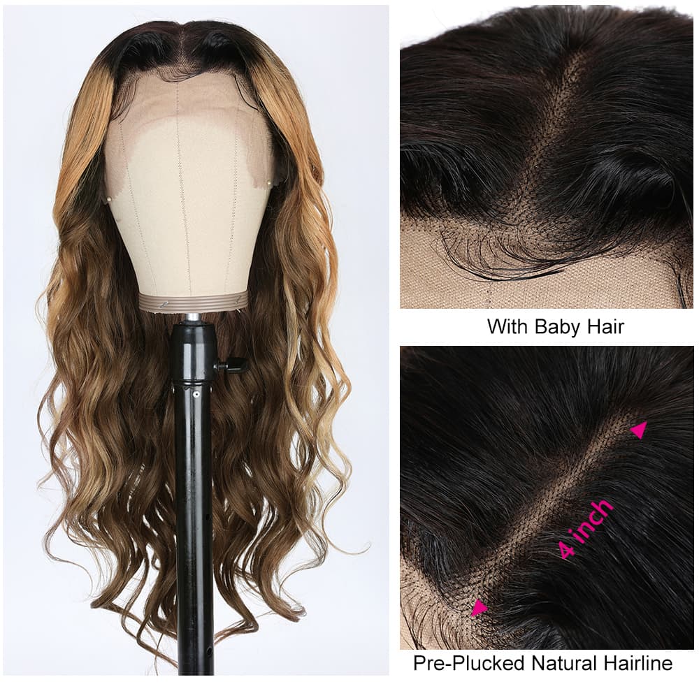 Incolorwig Ombre Highlight Color Loose Wave 13x4 Lace Front Wigs Pre Plucked With Baby Hair
