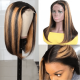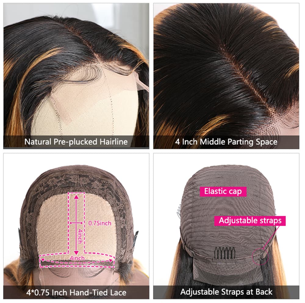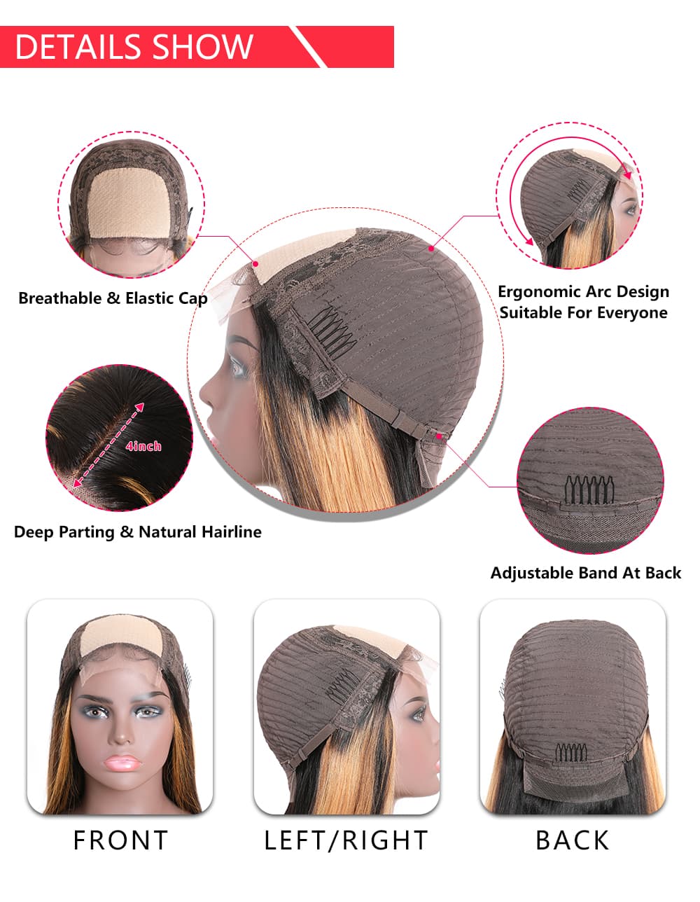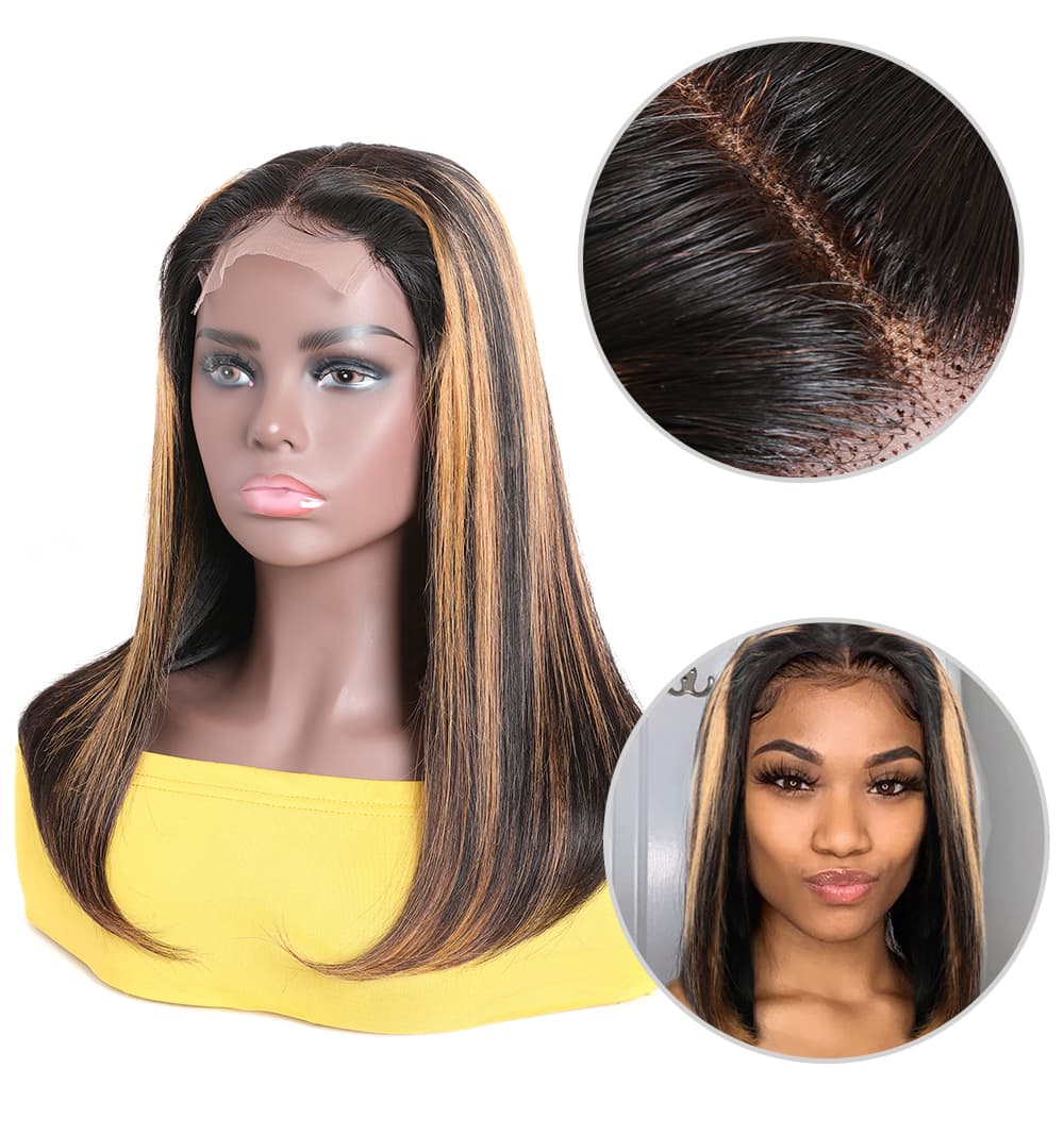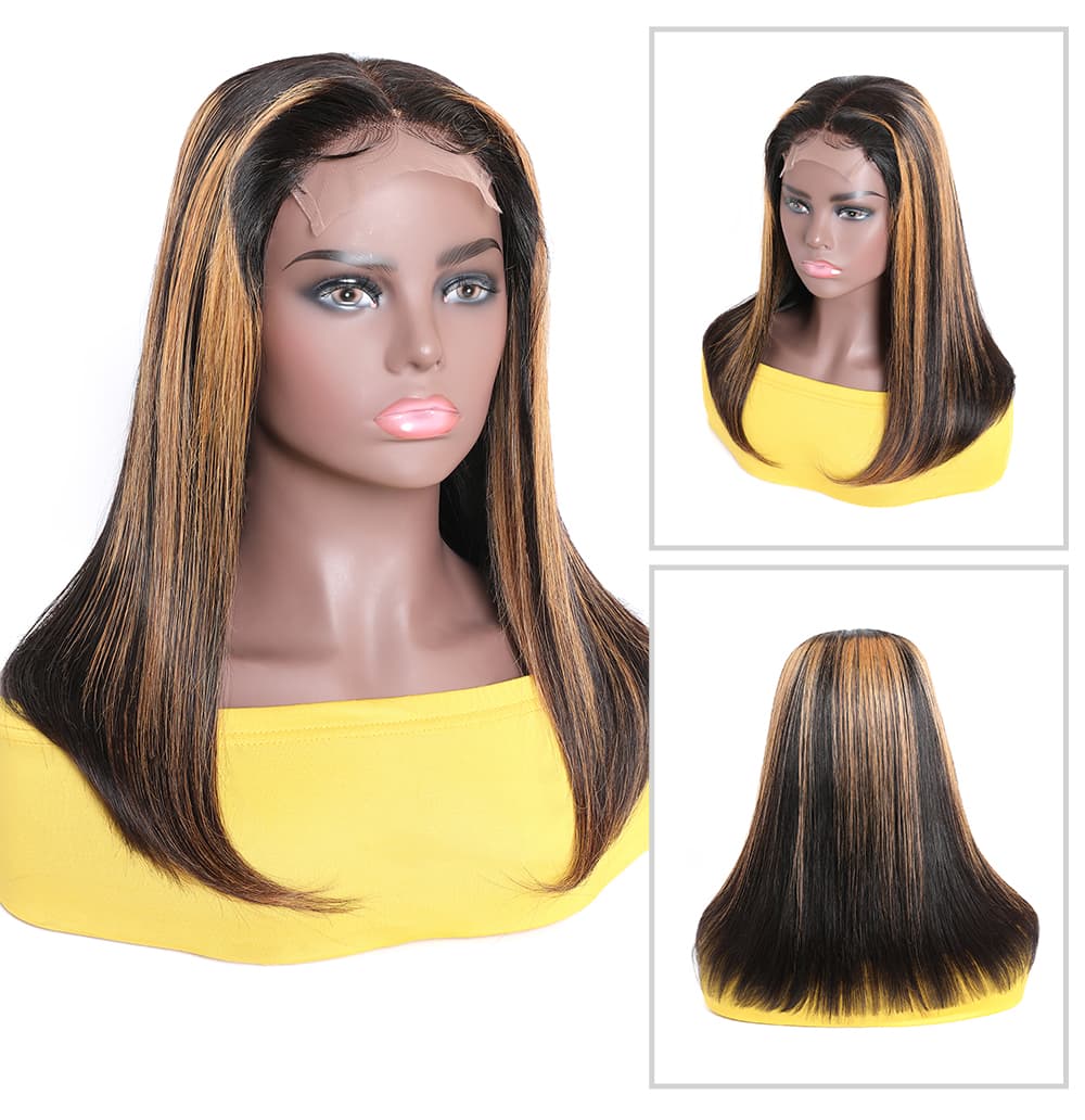 Incolorwig Affordable Highlight Ombre #TP1B30 Colored Straight Short Bob Wigs 4*0.75 Lace Part Wigs 150% Density Middle Part Natural Hairline Best Human Hair Wigs