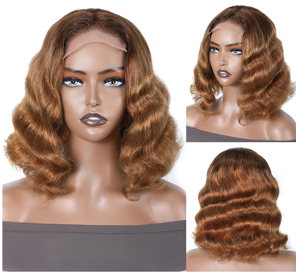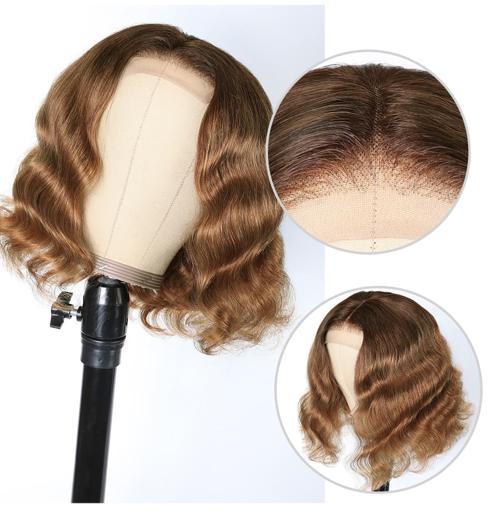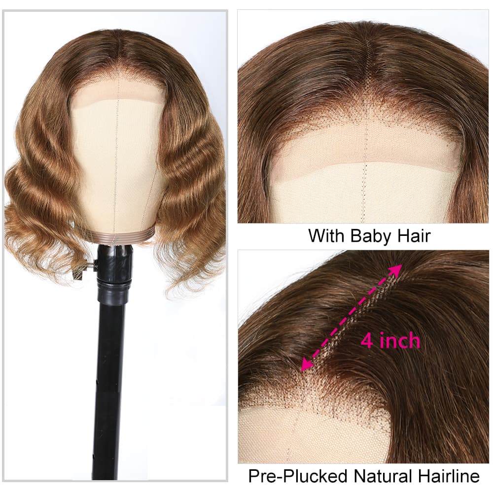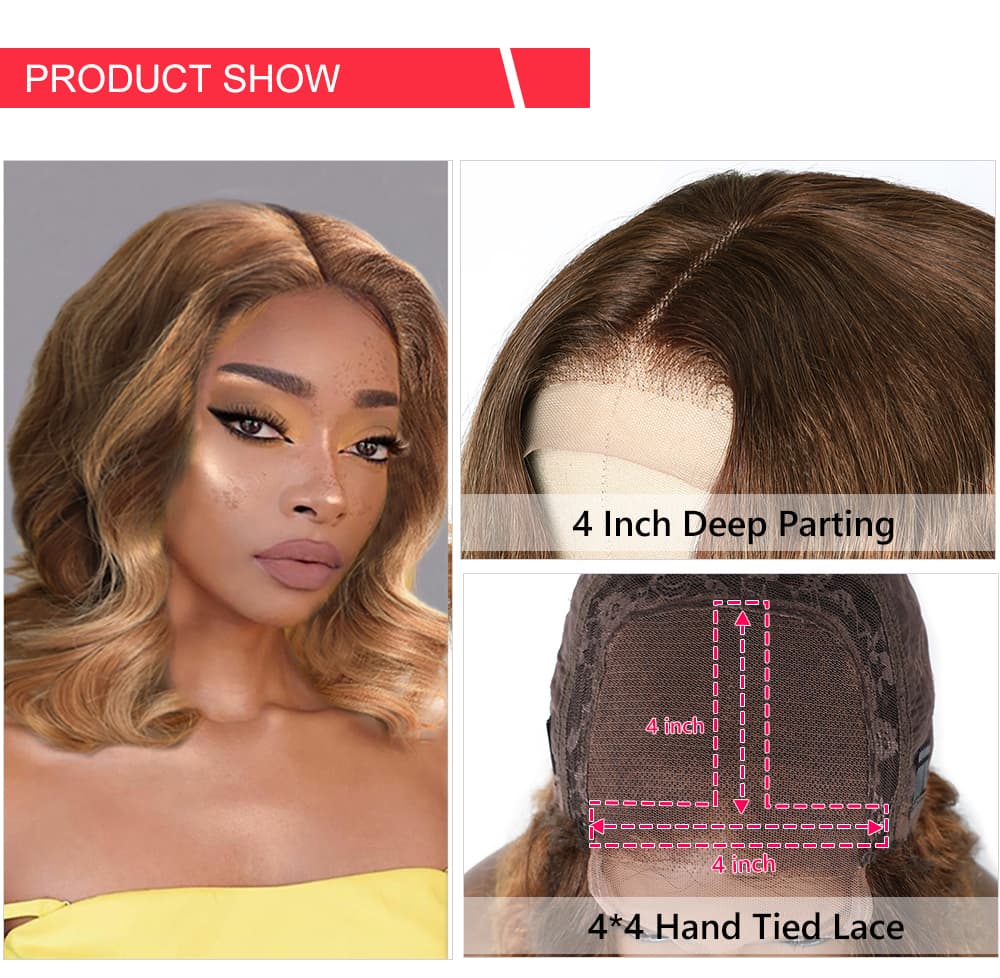 Incolorwig Ombre Honey Blonde Short Deep Wave Wig Brown Balayage 4x4 Lace Closure Highlight Wig
