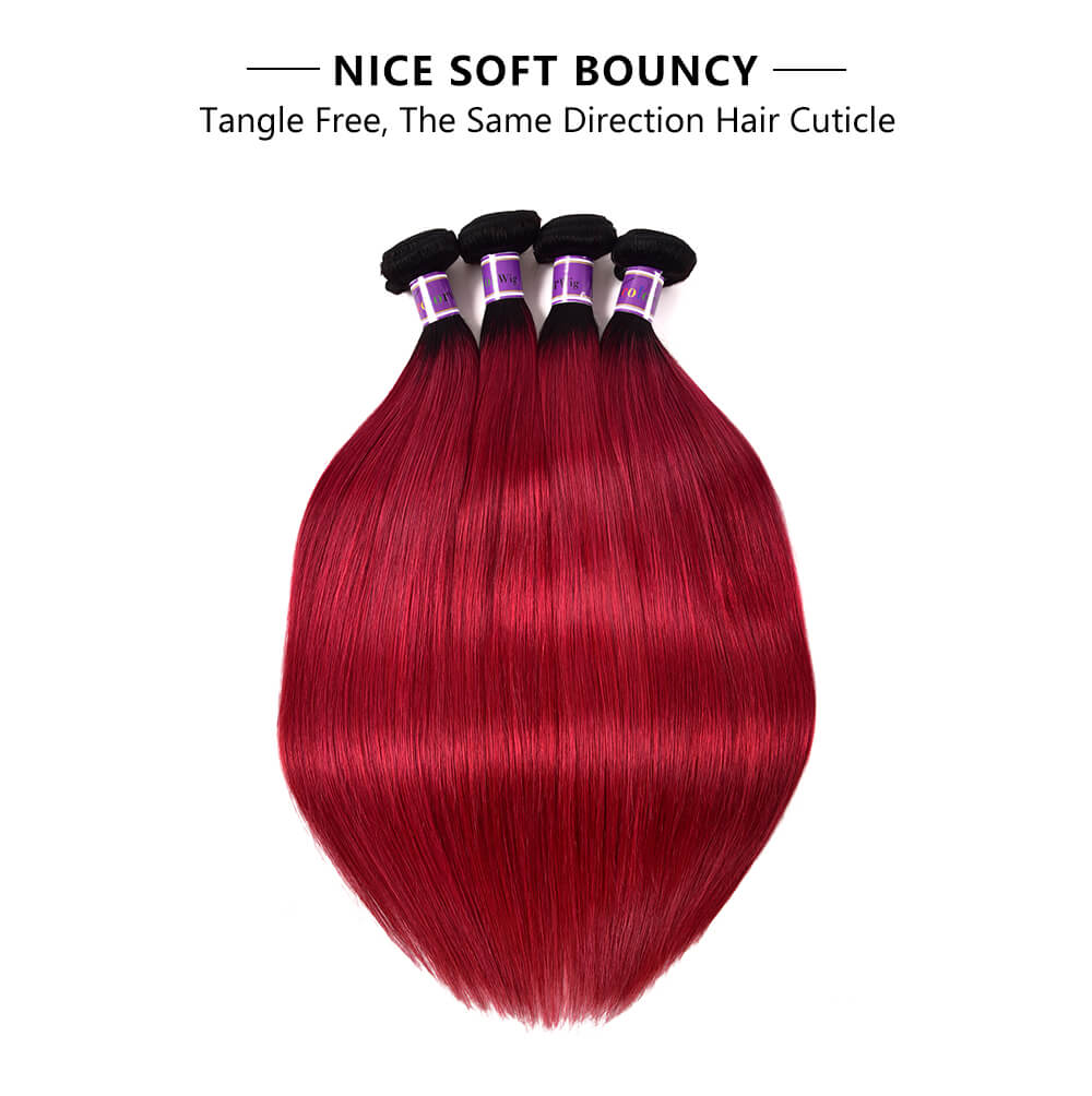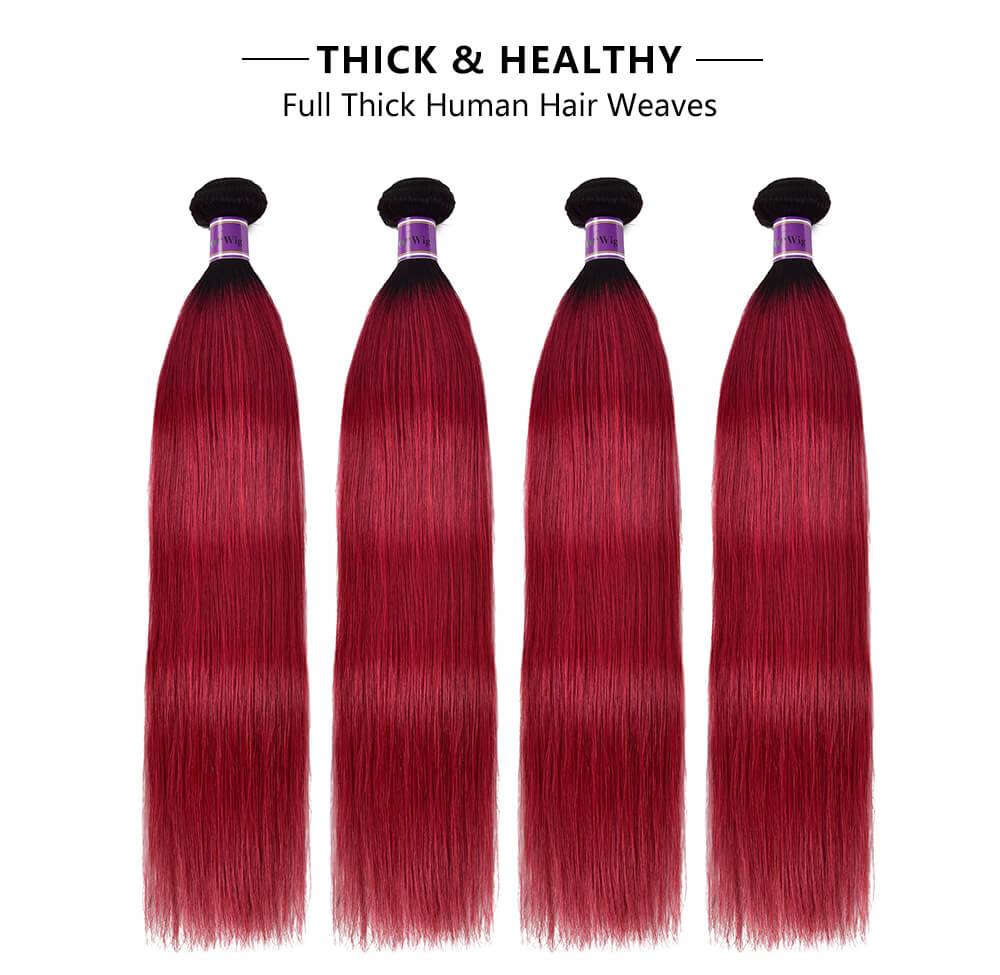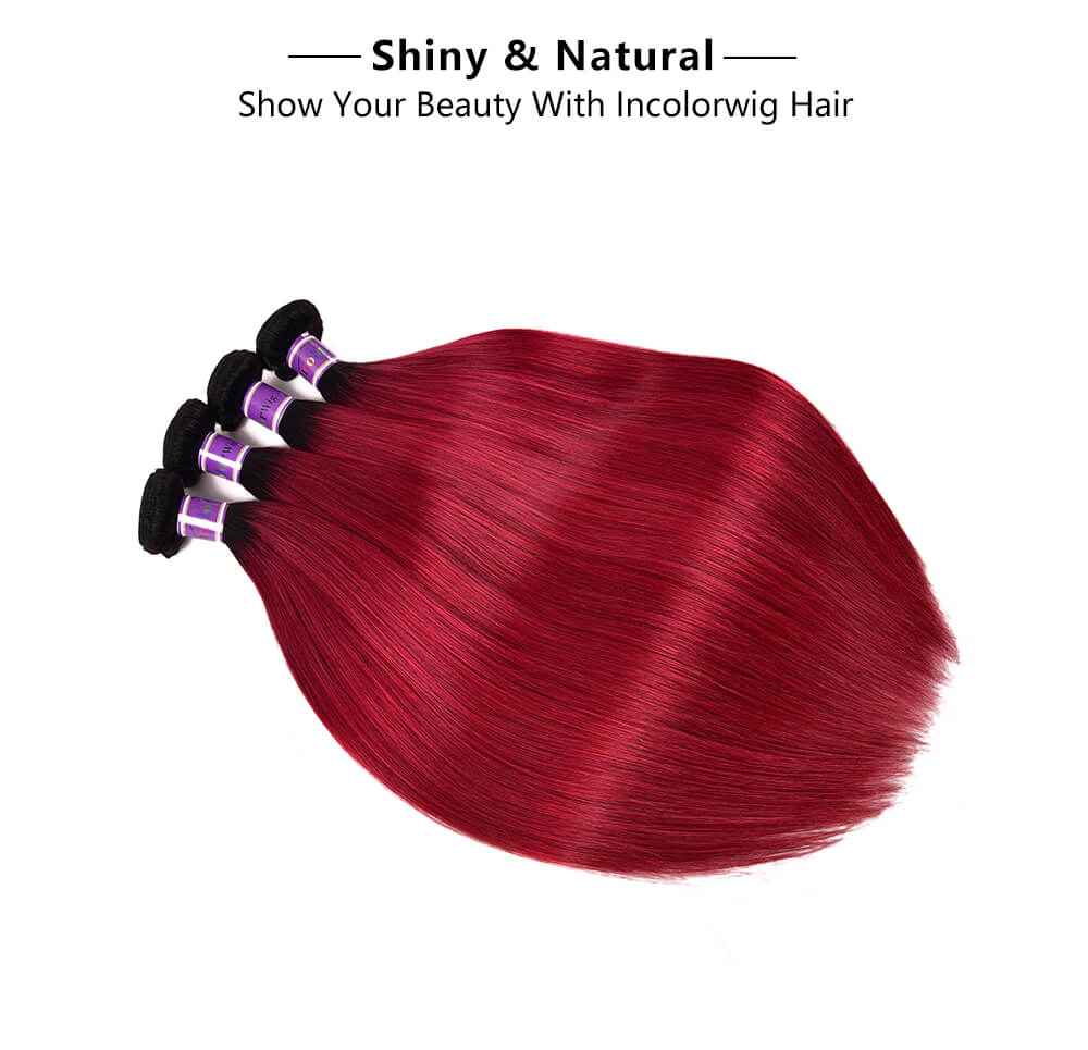 Incolorwig Peruvian Human Hair Weave #TB Burgundy 4 Bundles Straight Human Hair Weave