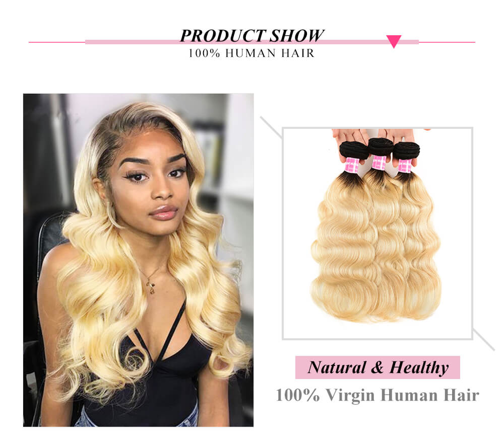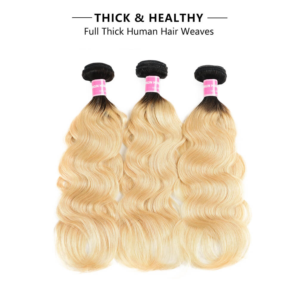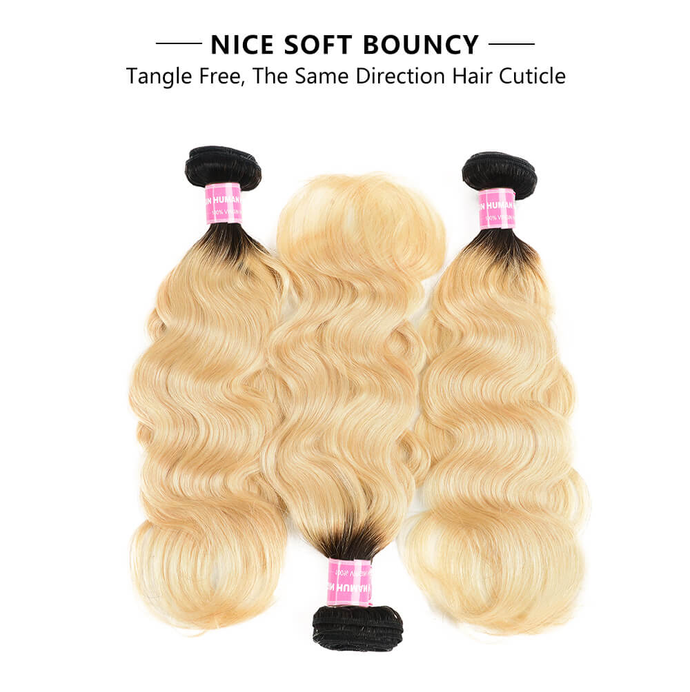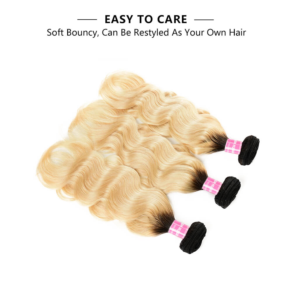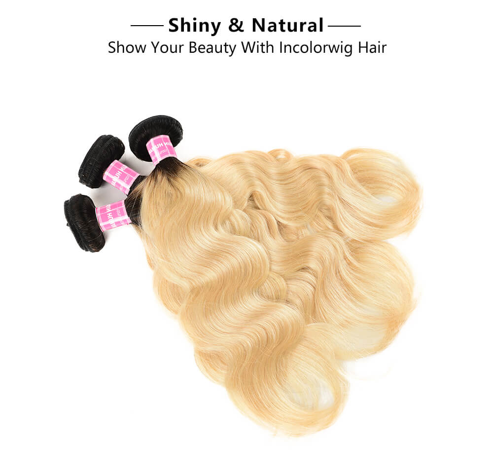 Incolorwig Peruvian Virgin Body Wave Hair Weave 3 Bundles #T1B613 Ombre Blonde Human Hair Weave