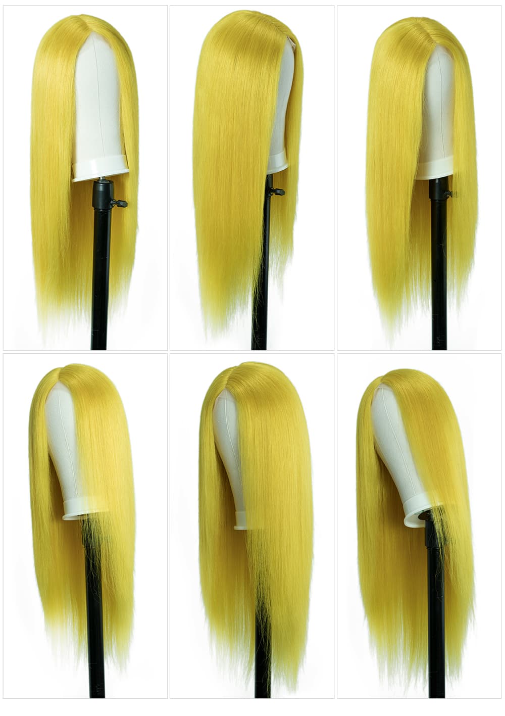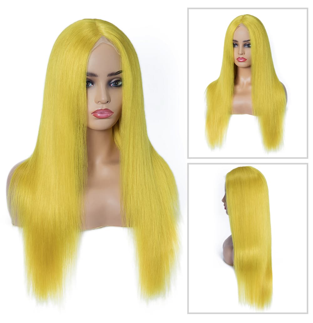 Incolorwig Pure Color Yellow Wigs 150% Density Straight Hair Wigs Hairline Middle Lace Part Wig