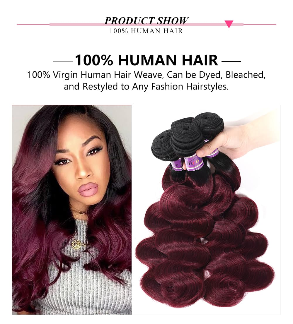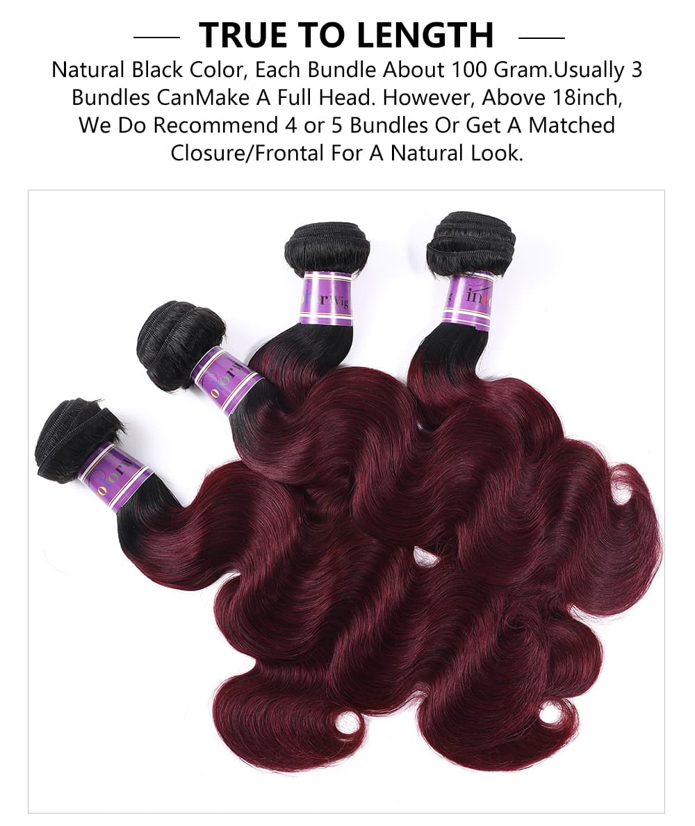 Incolorwig 100% Brazilian Hair, Virgin Human Hair, Pre-Colored Hair #TB99J For Women. Body Wave 4 Bundles In stock