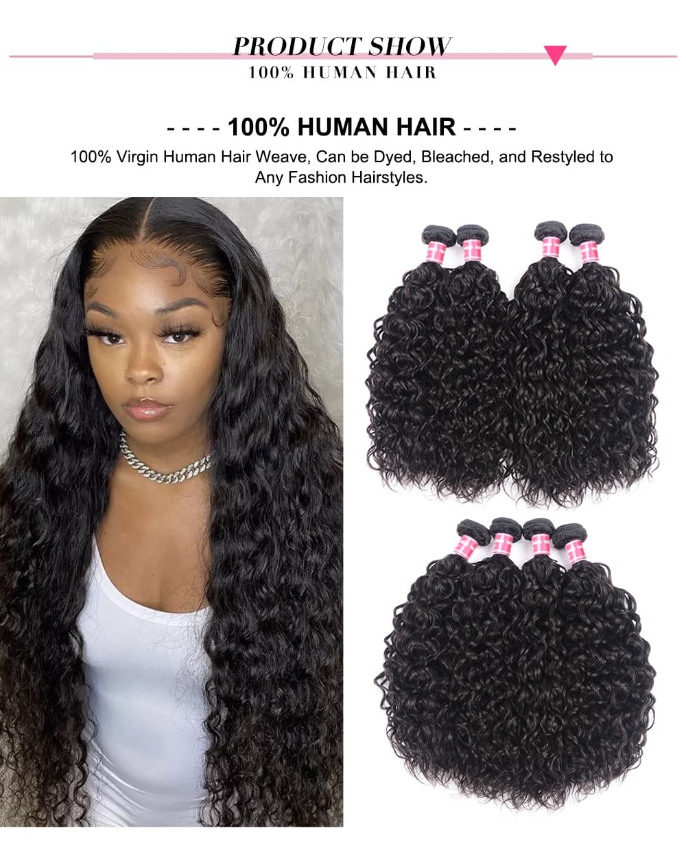 Incolorwig 100% Unprocessed Virgin Human Hair Bundles 4 Pcs Water Wave Weave Soft Hair Bundle Deals No Tangle No Shedding