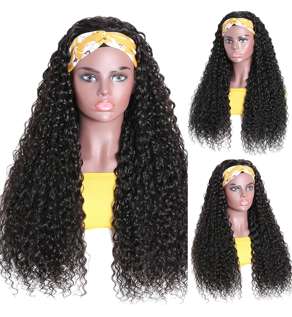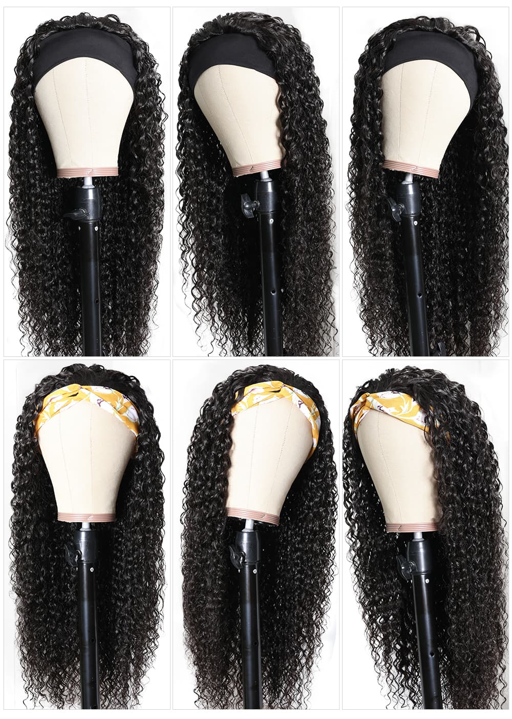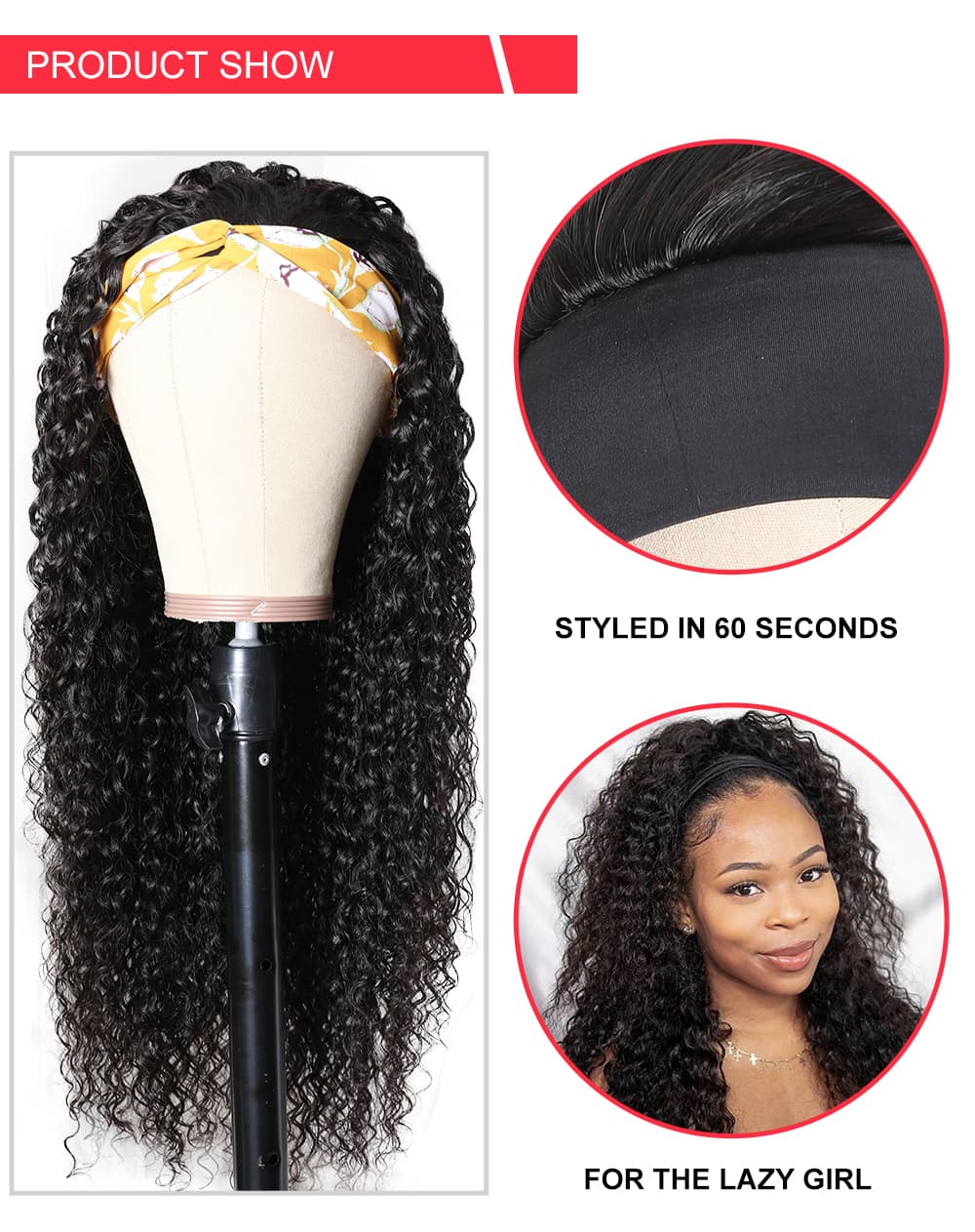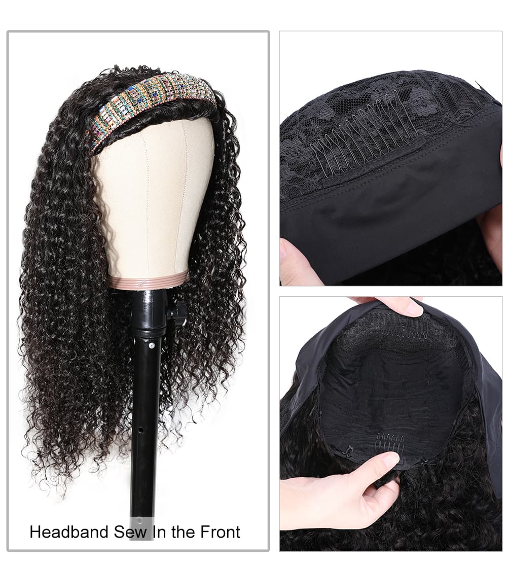Incolorwig Superior Human Hair Wig 150% Density Jerry Curly Hair Headband Wig