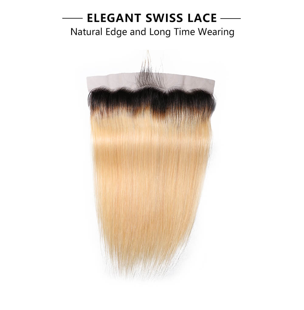 Incolorwig High Quality Human Hair Combination, 4 Bundles Hair With 13*4 Free Part Lace Frontal, Super Thick For Women, #T1B613 Ombre Straight Hair