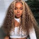 Incolorwig #TL412 Highlight Jerry Curly Hair 13x5x0.5 T Part Wigs Honey Blonde 13*4 Lace Frontal Wigs With Baby Hair