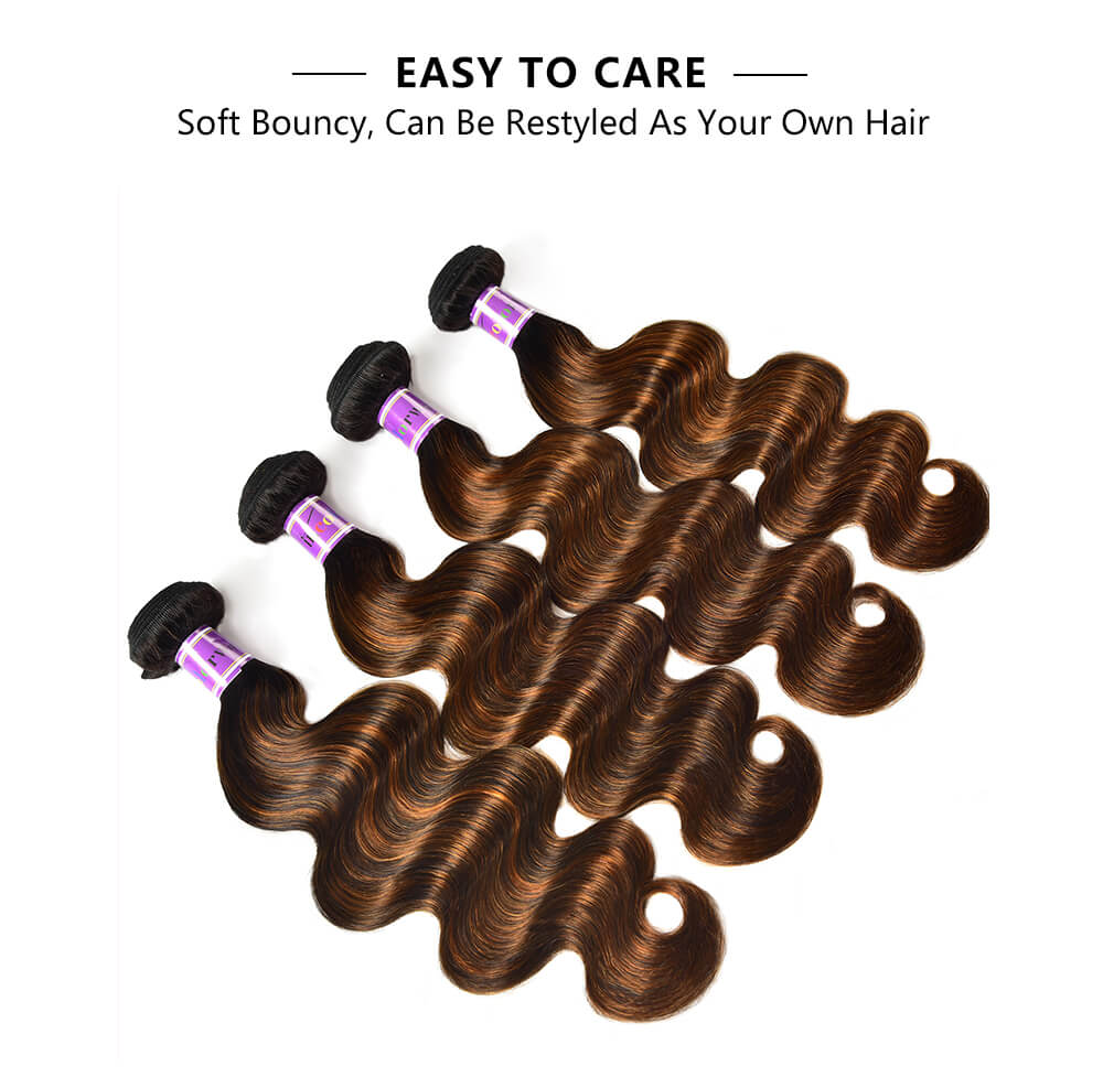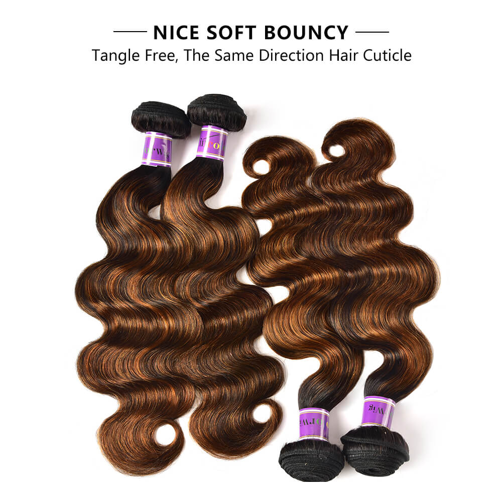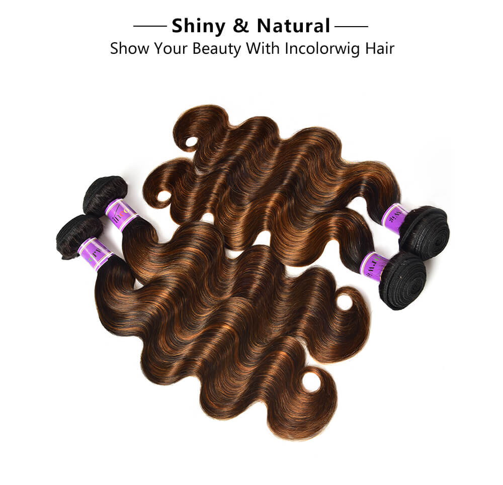 Incolorwig 4 Bundles Deals Brazilian Human Hair Weave, 100% Virgin Hair, FB30 Color & Body Wave Texture In Stock.