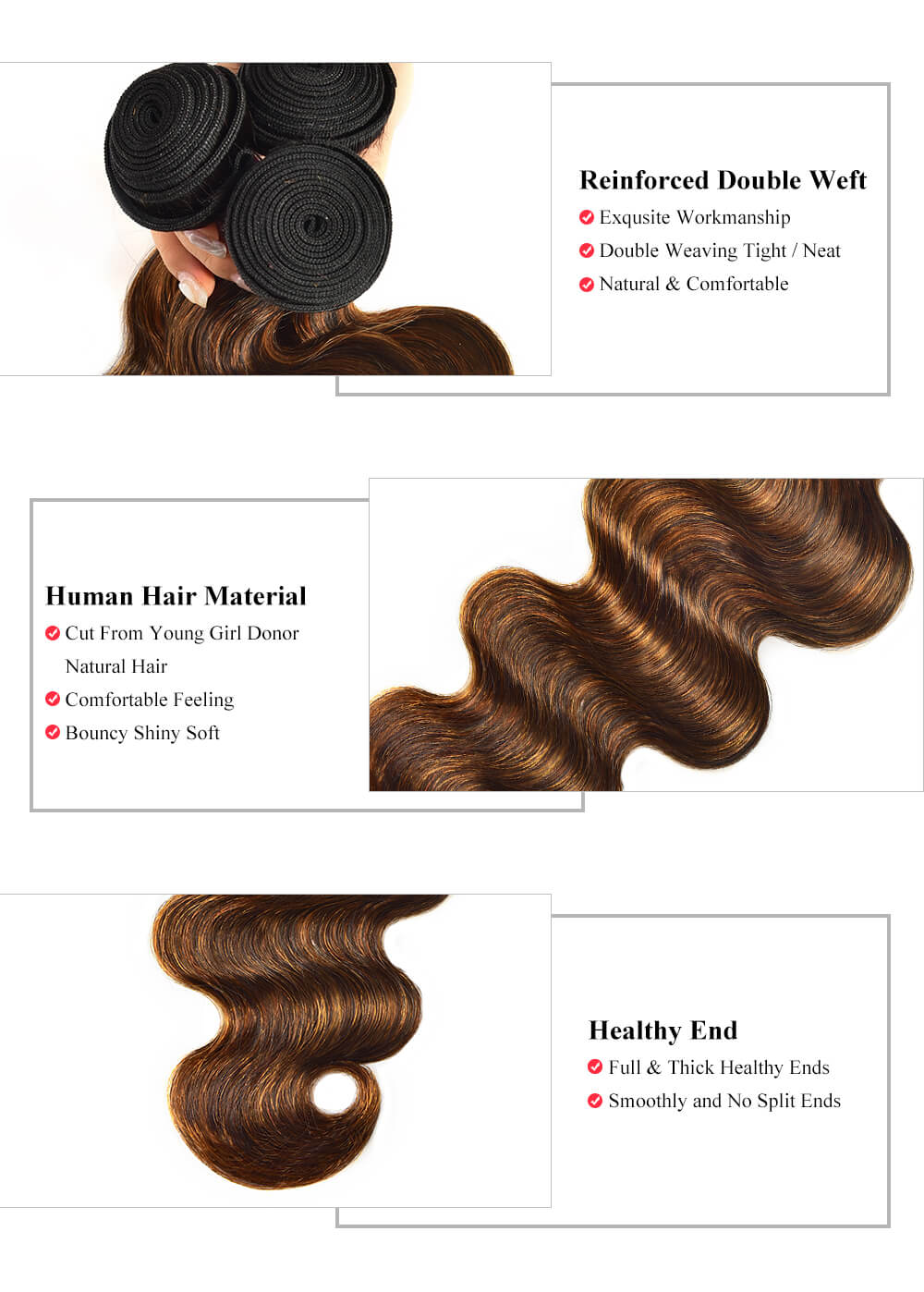 | Meta Keywords | Brazilian Virgin Hair, 100% Human Hair, 4 Bundles Hair Weave, #FB30 Virgin Human Hair |