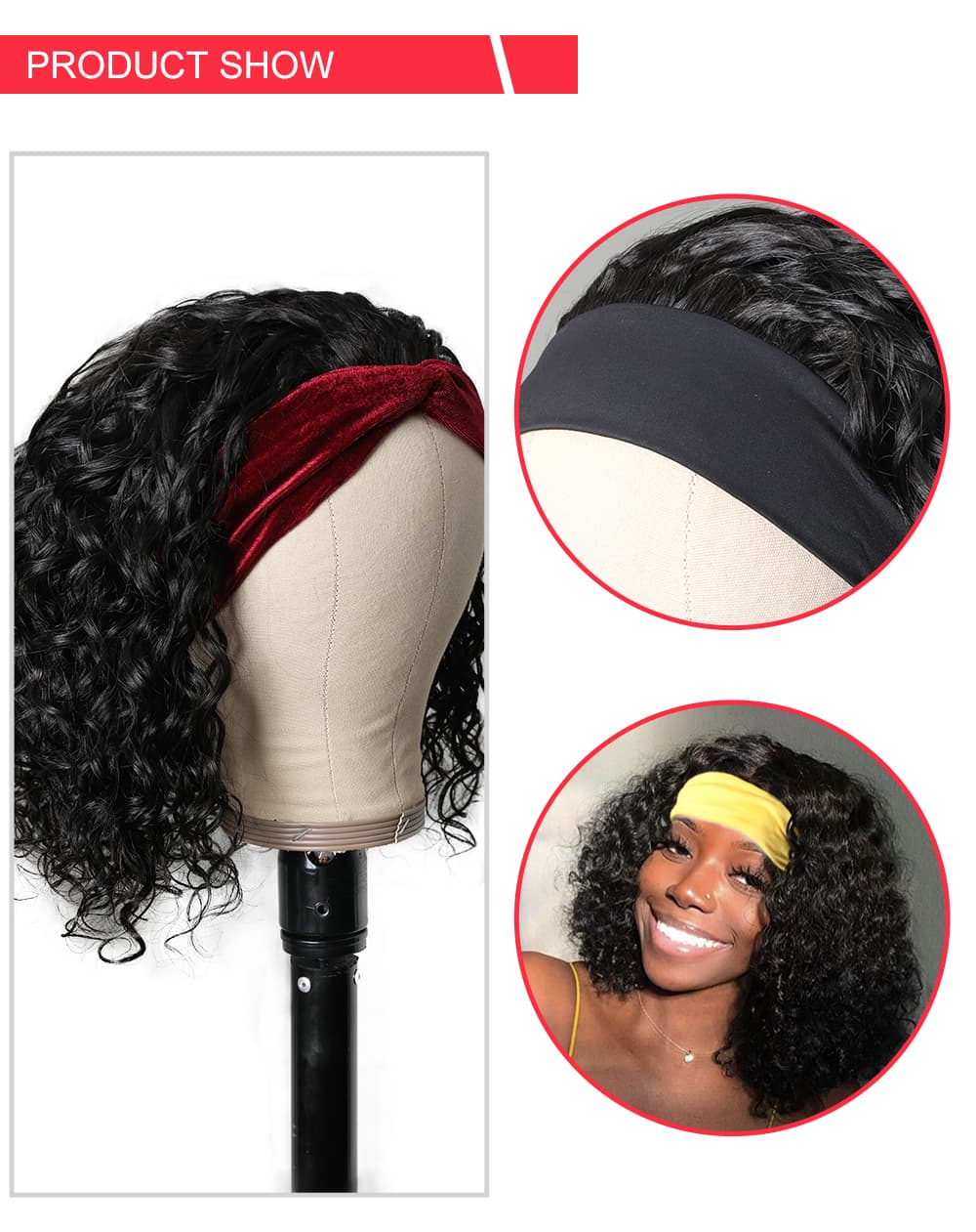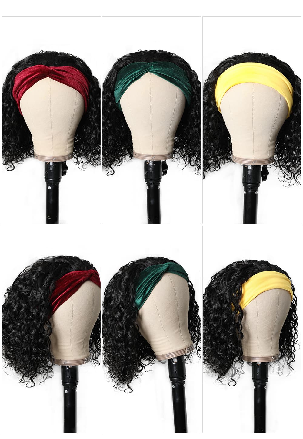 Incolorwig Water Wave Bob Wigs Natural Black Headband Human Hair Wigs